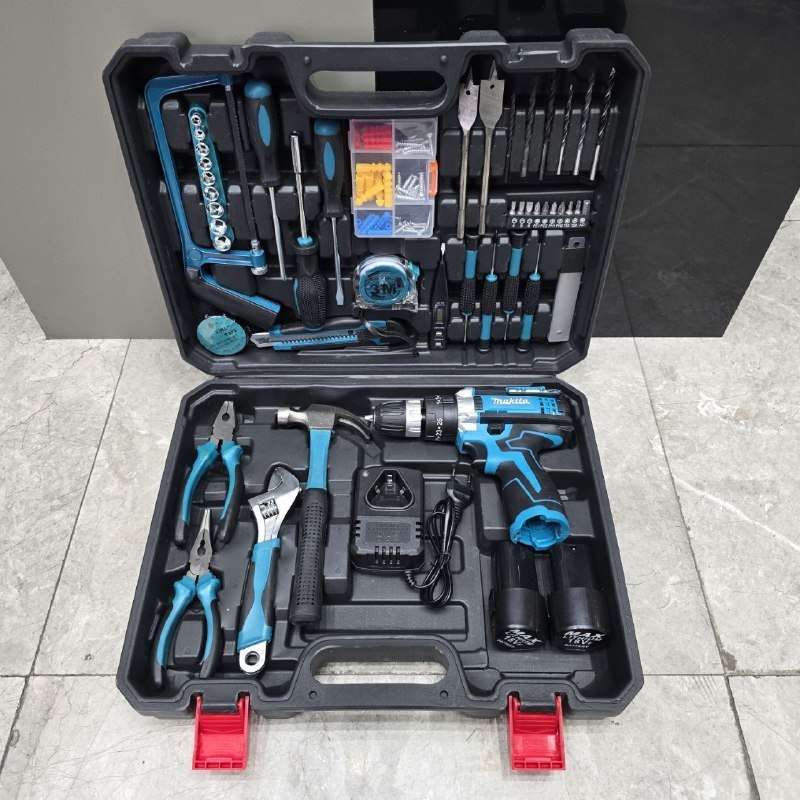 ✔ دارای کلیه ابزارهای مصرفی شامل؛ آچار فرانسه سایز۸، انبردست، دمباریک، چکش، بکس تک سایز ۴ تا ۱۳، متر ۳ متری، پیچ گوشتی دوسو و چهارسو سایز بزرگ، پیچ گوشتی نوک خور، مته آهن سایز ۵ و ۶ و ۸، مته دیوار سایز ۵ ،۶ و ۸، مته برگی سایز ۱۲ و ۱۶، ۹ عدد نوک پیچ گوشتی، تبدیل نوک پیچ گوشتی به بکس چسب برق، کاتر، فازمتر دیجیتال، آچار سه نظام، ۵ عدد تیغ کاتر، دو سایز پیچ گوشتی موبایلی دو سو و دو سایز پیچ گوشتی موبایلی چهارسو، کمان اره چوب و فلز، مجموعه سایزبندی پیچ و رولپلاک